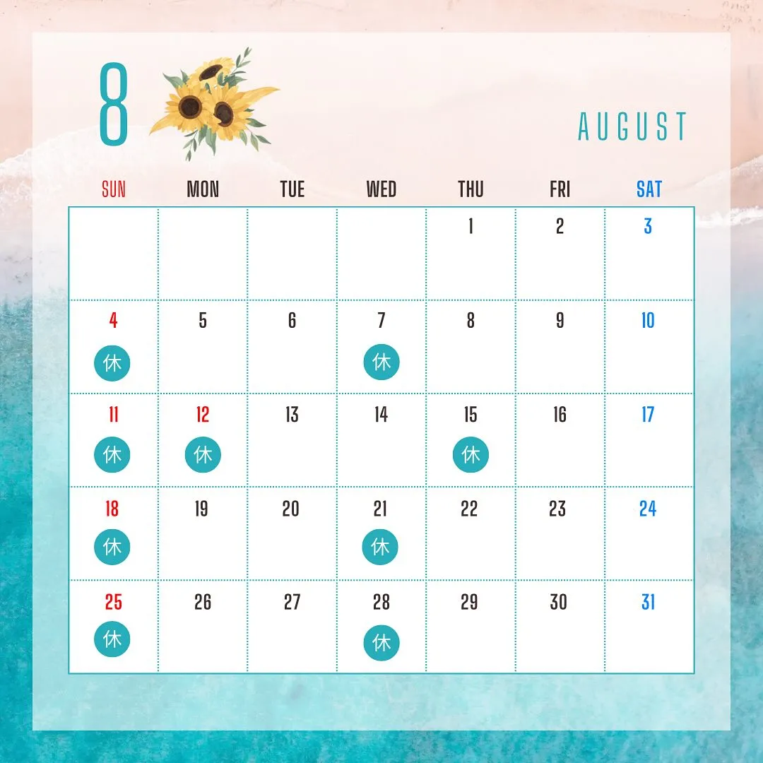 🌻8月のお休みのお知らせ🌻 🌻8月のお休みのお知らせ🌻こんにちは、痩身館ayaです❤️いつもご利用いただきありがとうございます!梅雨が明け、さらに暑くなってきましたね💦まだまだ夏は続きます☀️ダイエットもまだまだ間に合います🙌💡💡…